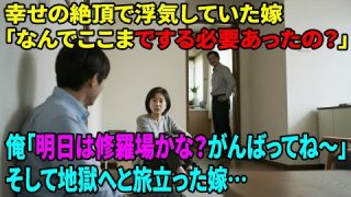 絶頂 幸せの絶頂で浮気していた嫁「なんでここまでする必要あったの?」俺「明日は修羅場かな?がんばってね〜」そして地獄へと旅立った嫁…